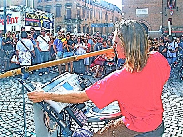 Now, 2 decades later, Dave’s unique expression of sound involves a complex myriad of instruments: didgeridoos(slide didgeridoo), saxophones, percussion (from African djembe to Japanese Taiko drums), keyboards, guitar, marimbas and Native American flute.
